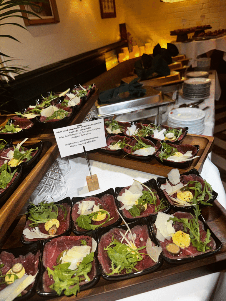 Antipasti bites, selected Italian cheeses, fresh crispy focaccia, and beloved Italian ingredients arranged on a Tuscany-inspired welcome table. A table that sparks curiosity, brings people together, and impresses from the very first moment of arrival.